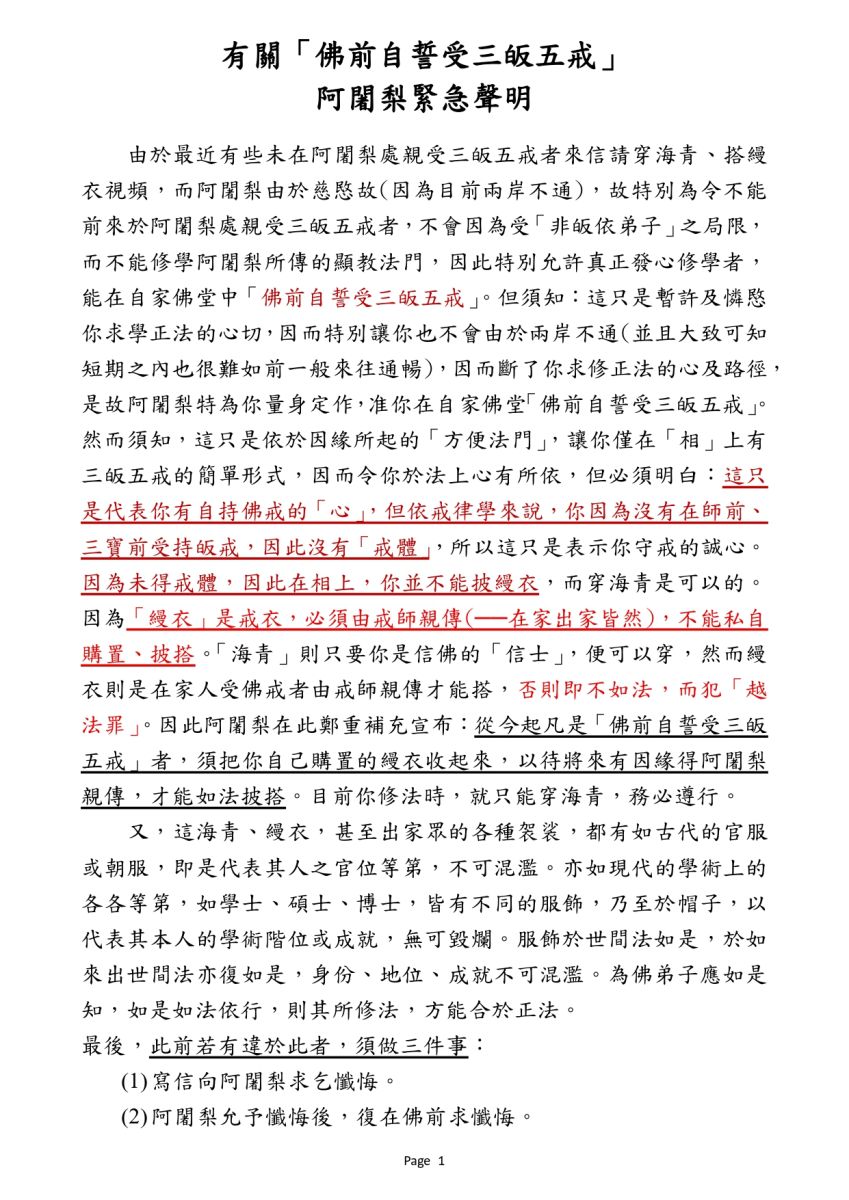 有關「佛前自誓受三皈五戒」—— 阿闍梨緊急聲明