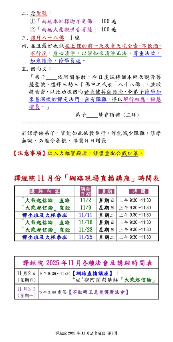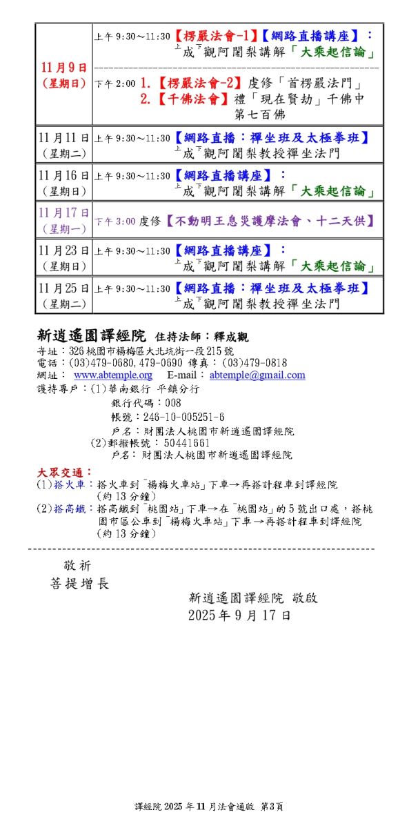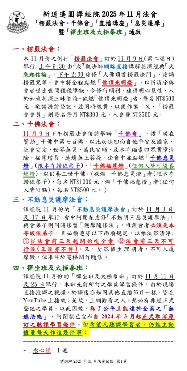 譯經院2025年11月法會--楞嚴_千佛_禪坐班_直播講座_護摩