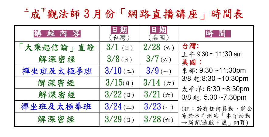 遍照院2026年3月法會--直播講座時間表(更新版)